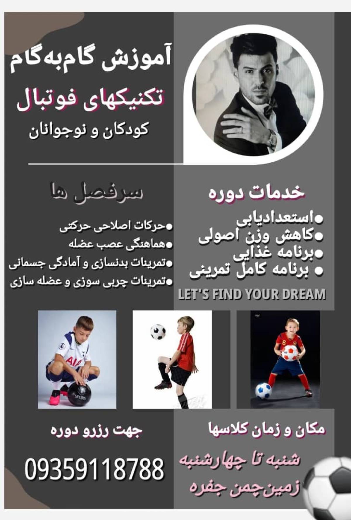 ▪️کلاسها از شنبه تا چهارشنبه در زمین چمن جفره برگزار میشود.