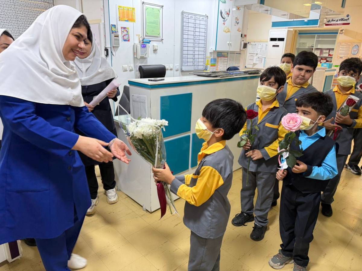 تقدیر دانش‌آموزان دبستان شهید عباس حسین‌نژاد از پرستاران بیمارستان سلمان فارسی بوشهر به مناسبت روز پرستار