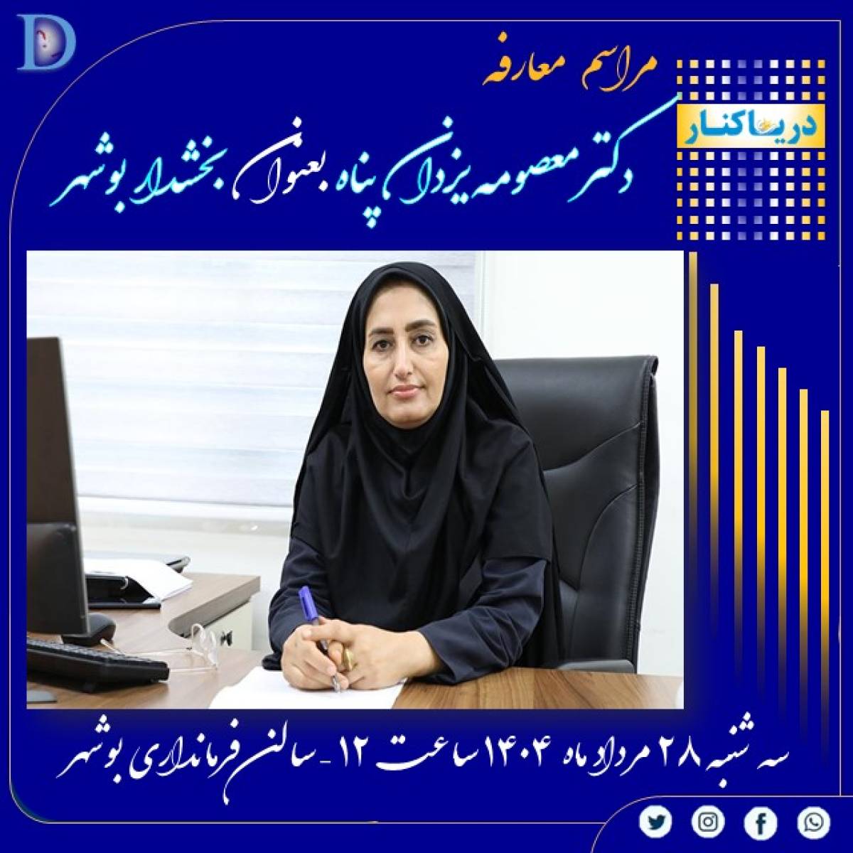 برچسب ها #دکترمعصومه یزدان پناه #بخشدار مرکزی بوشهر #فرمانداری بوشهر
