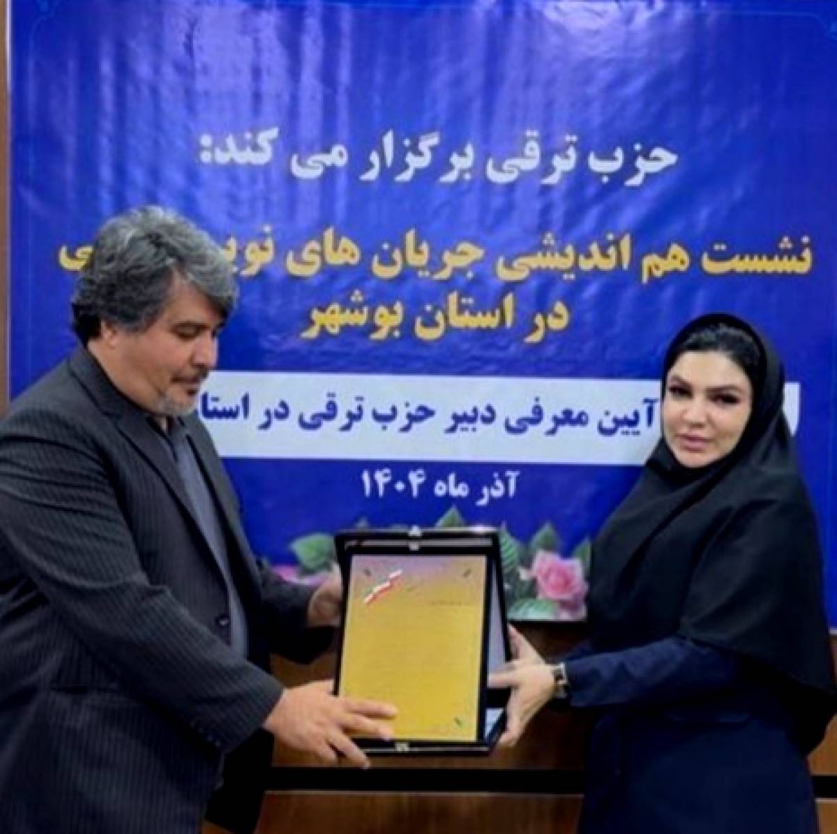 در این نشست، احکام «دبیر حزب ترقی استان بوشهر» از سوی دکتر بابک آذرباد و «نماینده کمیته انتخابات خانه احزاب ایران در استان بوشهر» از سوی دکتر جمشید ایرانی به وی اعطا شد.