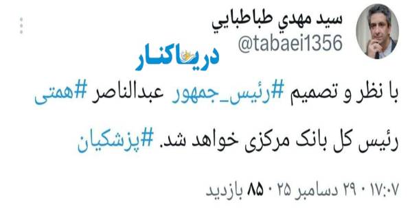 عبدالناصر همتی رئیس کل بانک مرکزی خواهد شد