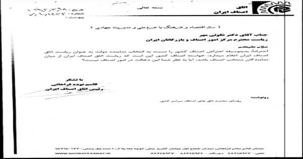 پیش از این نامه ای از سوی رییس وقت اتاق اصناف در سال 1402 منتشر شده بود که رییس وقت اتاق از مدیرکل صمت خواسته بود مبلغ سه میلیون و پانصد هزار تومان بجای سیصد هزار تومان از کسبه دریافت شود برای پرداخت هزینه های دفاتر اتحادیه ها...