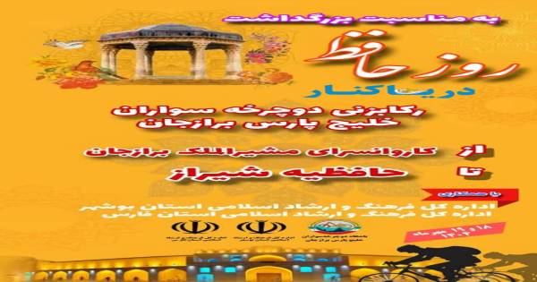 در آستانه بزرگداشت روز حافظ، پنج نفر از اعضای گروه دوچرخهسواری خلیج پارس شهر برازجان با اهداف فرهنگی و ورزشی و به منظور پاسداشت زبان، شعر و ادب فارسی، مسیر کاروانسرای مشیرالملک برازجان تا آرامگاه حافظ در شیراز را رکاب میزنند.