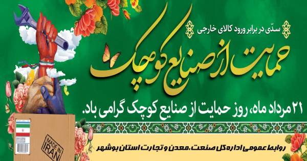 مدیرکل صنعت، معدن و تجارت استان بوشهر طی پیامی 21 مرداد ماه روز ملی حمایت از صنایع کوچک را تبریک گفت.