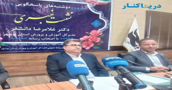 غلامرضا دانشفر (مدیرکل آموزش و پرورش بوشهر)، با اشاره به گستردگی ۲۵۴ هزار دانشآموز و بیش از ۱۶ هزار نیروی فرهنگی در استان تأکید کرد که آموزش و پرورش، گسترده ترین و اثرگذارترین دستگاه اجرایی بوشهر است و هر تصمیم در این حوزه مسیر آینده فرزندان این سرزمین را رقم میزند. وی بر ضرورت تصمیمگیری دقیق و برنامهمحور در این دستگاه تأکید کرد.